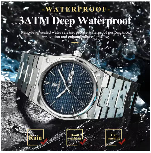 Built to withstand the elements, this watch is water-resistant up to 30 meters—perfect for daily wear and light splashes. The 11mm slim profile adds a modern touch, blending perfectly with business or casual attire.