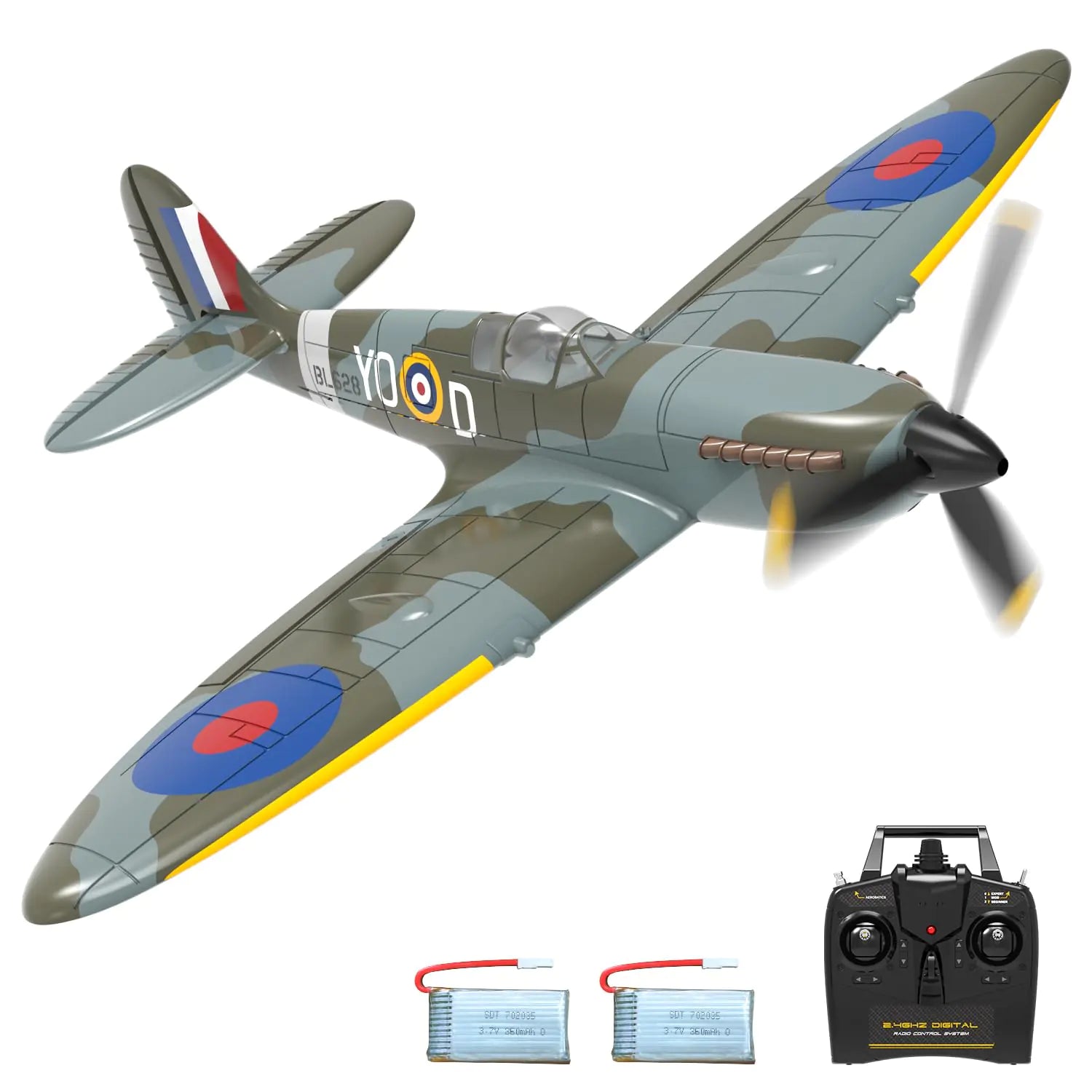 [[Easy to Fly for All Skill Levels] Equipped with Xpilot gyro stabilizer for smooth aerobatics and stable flights in light wind. This RC airplane offers three flight modes—beginner (full assist) intermediate (half assist) and expert (manual control)—making it perfect for new pilots and exciting for experienced ones [RC Planes with Advanced Features] Press the button hold the left stick and throw the hobby rc airplanes out. It will take off and hover in the sky waiting for your command. During flight simply push a button for aerobatic fun "[Realistic 4 channel RC Plane Fighter Spitfire] Featuring authentic detailing and a transparent cockpit this rc planes for kids offers dual propeller options: a 3-blade for realism and a 2-blade for optimal performance. Perfect for all skill levels its an ideal gift for aviation enthusiasts" [RC Plane for Outdoor Adventure] Pilots can enjoy a little flying club party with a 2.4GHz remote control system that has strong anti-interference capabilities and a control range of 656 feet. Come enjoy some fun with this rc airplanes for adults "[Thrust WWII RTF RC Airplanes ] The beginner rc planes gearbox system increases its thrust and efficiency allowing pilots to extend its flying time and speed. With this system and dual rechargeable batteries the remote control airplane for adults may fly continuously for up to 40 minutes" [RC Plane Ready to Fly] It includes everything required to start the model airplane; only require the batteries for transmitter. Once you open it you can easily launch the aircraft in less than a minute thanks to its already assembled design. Compact design that you can carry with you anywhere]